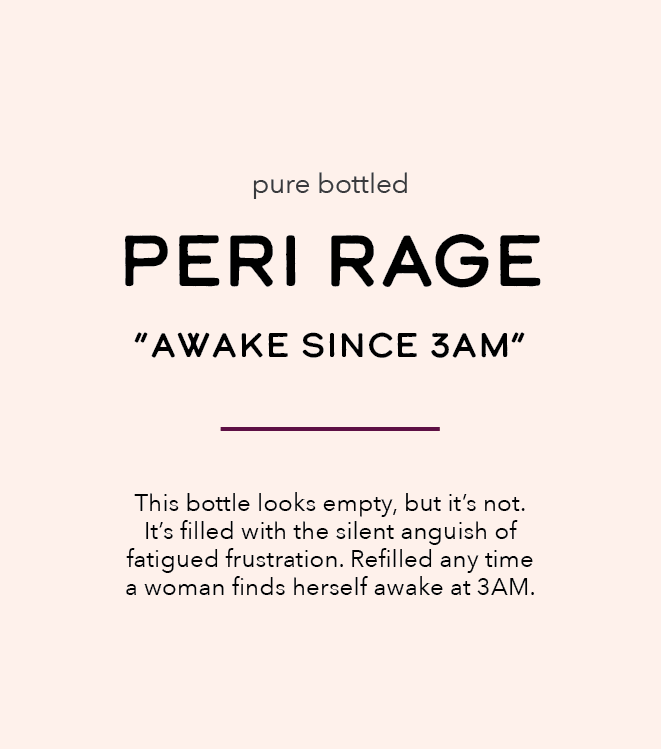 Beautifully designed empty bottles filled with nothing but hot, rage-filled air, thanks to the many symptoms of perimenopause.